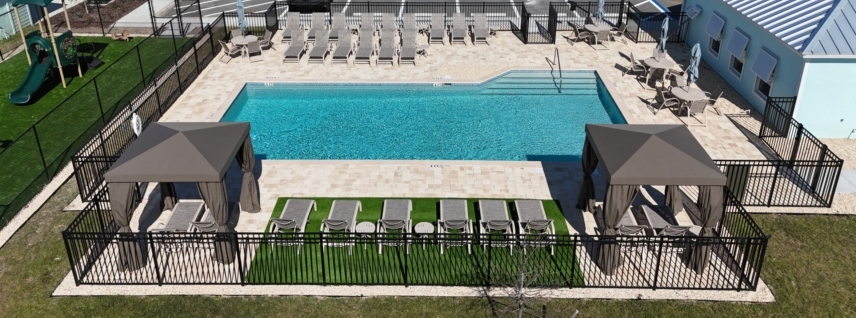The Keys Homes residents indulge in resort-style amenities, including an exquisite pool, fully-equipped fitness center, and a playful dog park for your furry friends. The villas’ concrete construction ensures your tranquility with its noise-reducing and energy-efficient qualities.